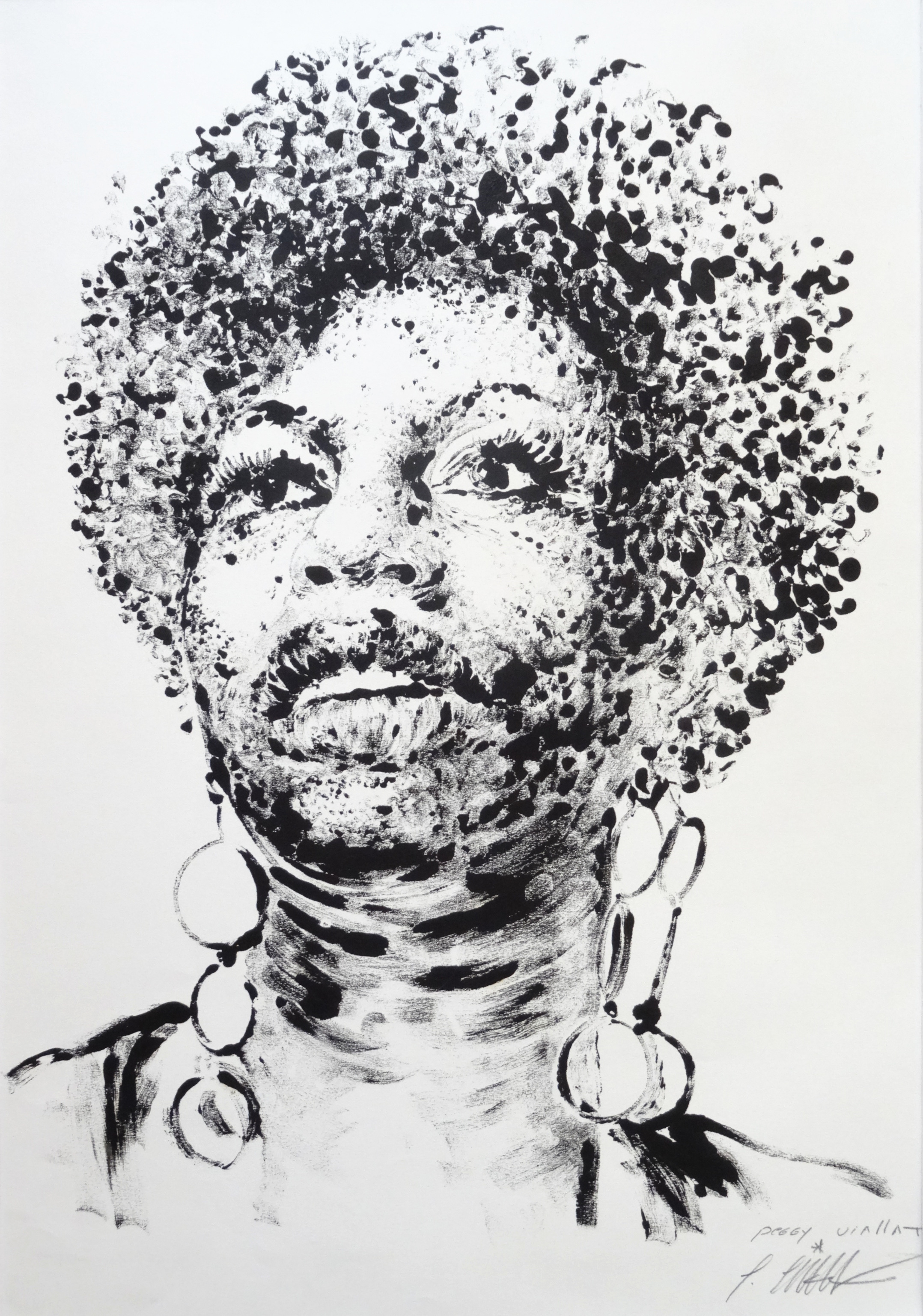 Aux confins du street art, de l’hyperréalisme et de l’esquisse classique, l’oeuvre expresssive de Peggy Vialat se décline selon diverses modalités : livres d’artistes (avec Michel Houellebecq, Vincent Ravalec…), installations, peintures, dessins et estampes.