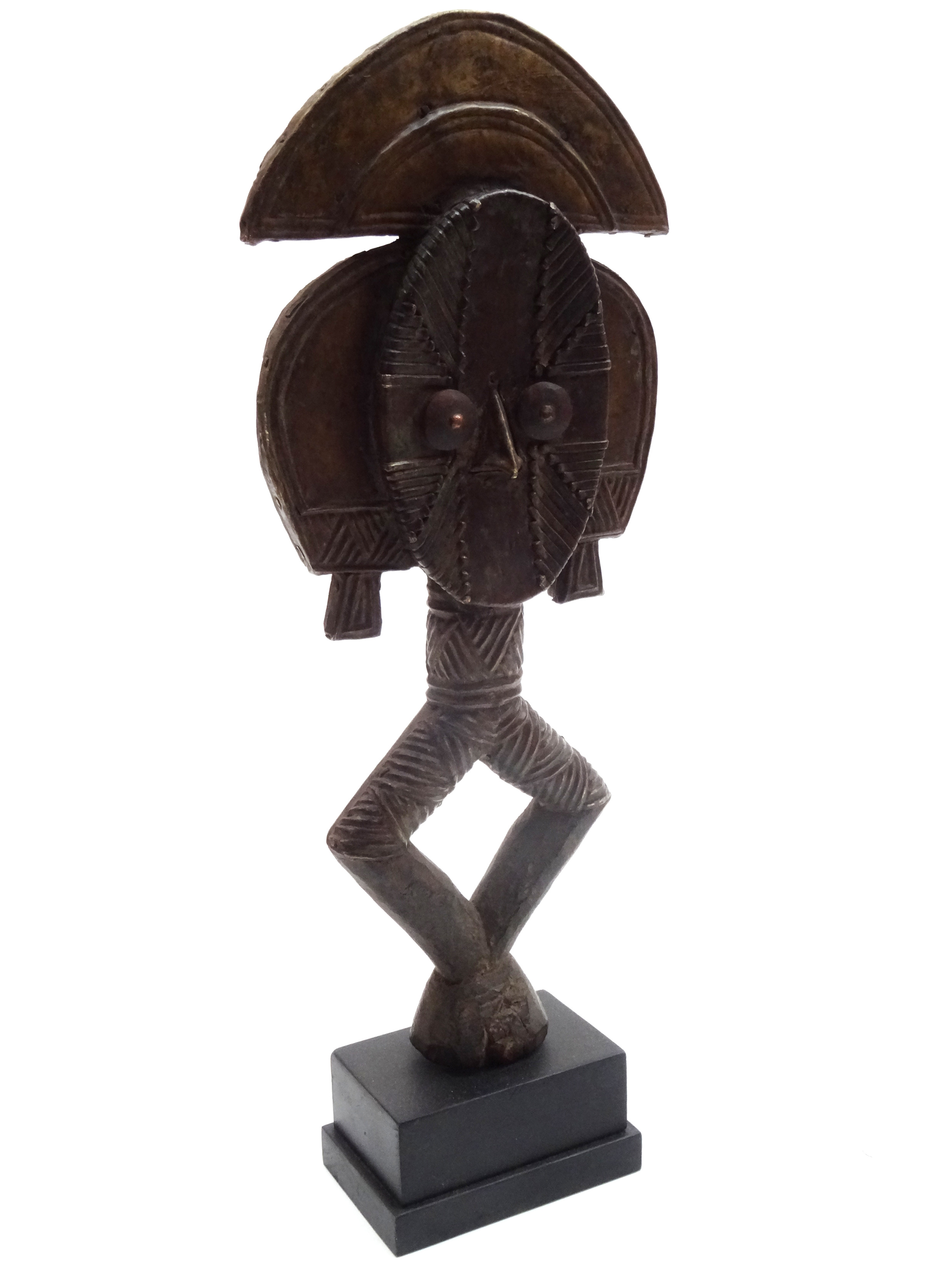 Sculpture en bois et laiton. Objet d’art africain coutumier.