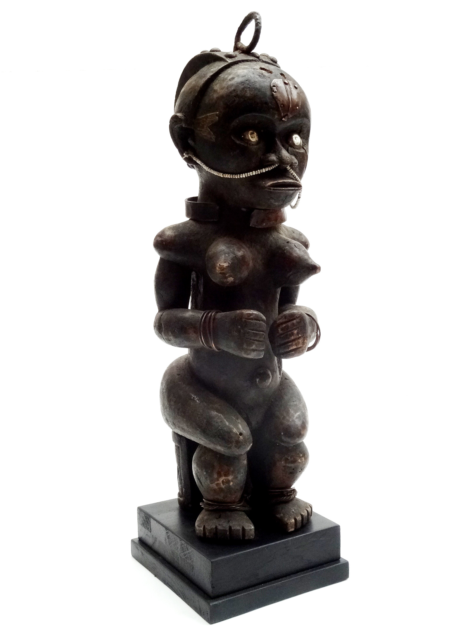 Ce gardien de reliquaire était promené à travers le village afin d’honorer les défunts. Pendant le rituel, la statuette était démontée de son support, puis placée sur un plateau ou une coiffe en paille.